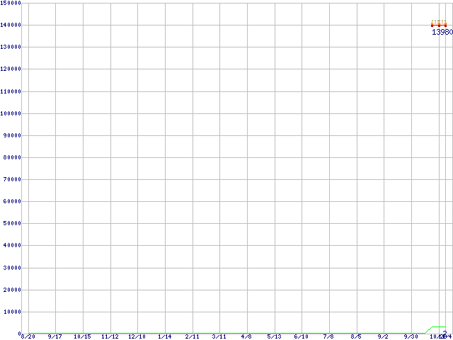 ※このグラフは過去のデータも税率5%相当に調整した税込み相当額のグラフです。 税率変更や、総額表示方式導入(2004年4月)の影響は除いています。 | | | ●凡例 | 最安値 (点線部は販売店未確認 または未調査) | 平均値 | 最高値 | ショップ数 |
