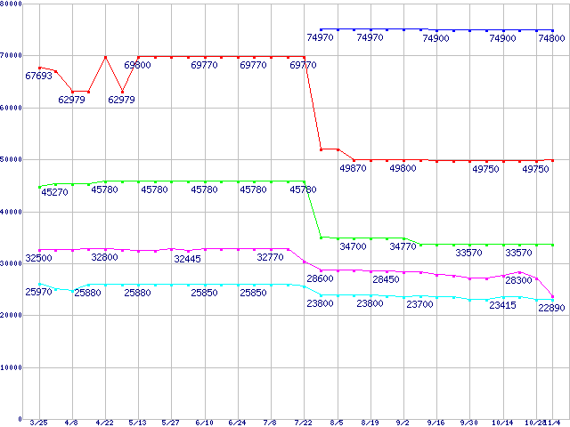 LGA 775 (FSB 800MHz,L2 1MB×2,Dual Core,Hyper-Threading,EM64T対応)の最安値推移