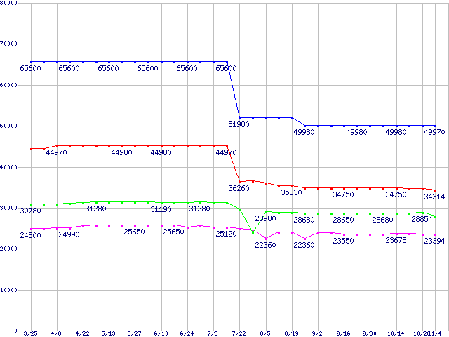 Socket 940 (FSB 1000MHz,L2 1MBx2,Dual Core)の最安値推移