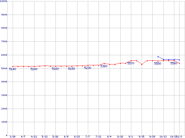 | DiamondMax Plus 8 (7200rpm,2MB,Ultra ATA/133)の最安値推移 | | | (2005年3月24日~2005年11月3日) |