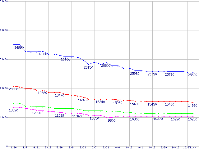 | Barracuda 7200.8 (7200rpm,Ultra ATA/100,8MB,133GB/Platter)の最安値推移 | | | (2005年3月24日~2005年11月3日) |