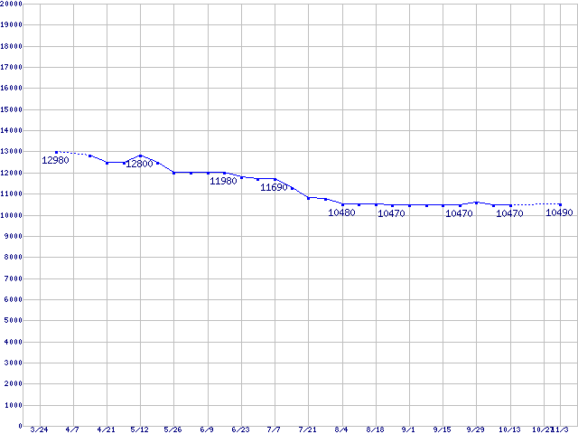 HAシリーズ (5400rpm)の最安値推移