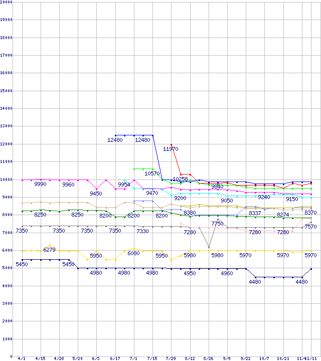 CPU主要製品(最安値1万円~2万円未満)の最安値推移