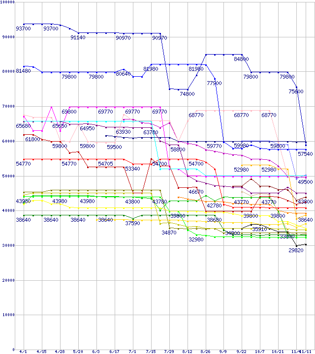 CPU主要製品(最安値3万円~6万円未満)の最安値推移