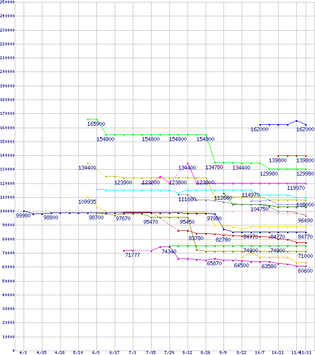 ※点線部は販売店が確認できなかった、または調査データがないことを示します