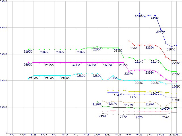| Socket 754・FSB 800MHzの最安値推移 | | | (2005年4月1日~2005年11月11日) |