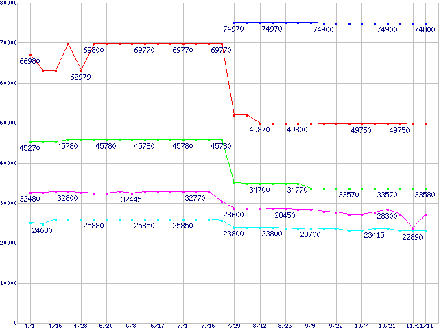 mPGA 479M・FSB 533MHzの最安値推移