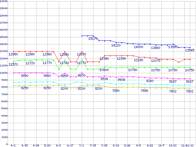 ※点線部は販売店が確認できなかった、または調査データがないことを示します
