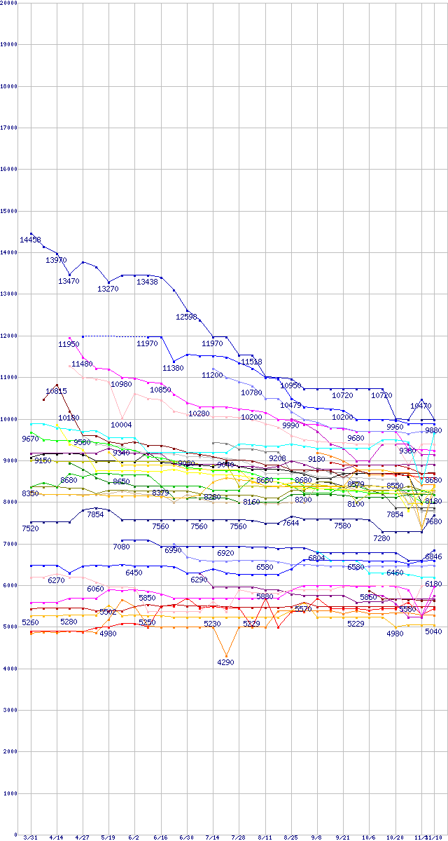 ※製品名をクリックすると個別のグラフを表示します ※点線部は販売店が確認できなかった、または調査データがないことを示します |