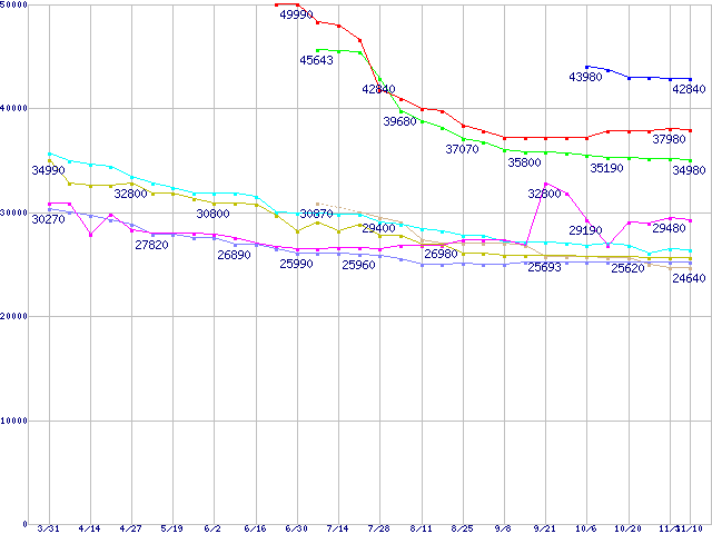 HDD 400GB以上の最安値推移