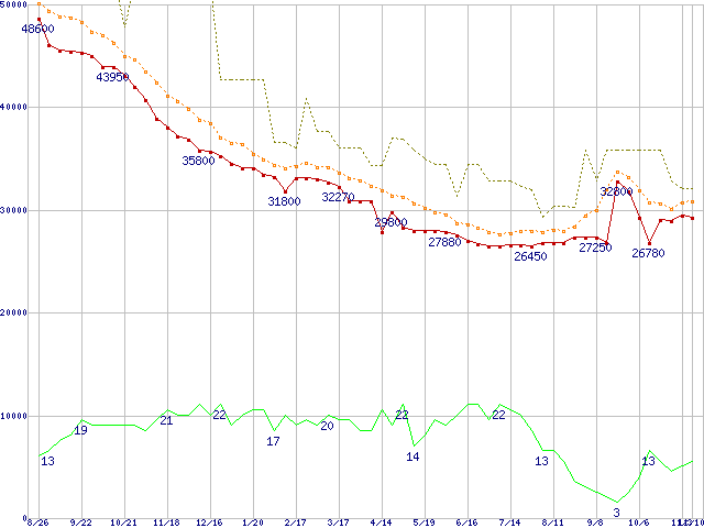 | HDS724040KLSA80 (400GB,8MB)の価格推移 | | | (2004年8月26日~2005年11月10日) |