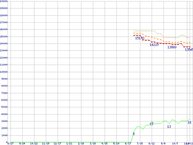 | Celeron D 350 (3.2GHz)の価格推移 | | | (2004年8月27日~2005年11月11日) |