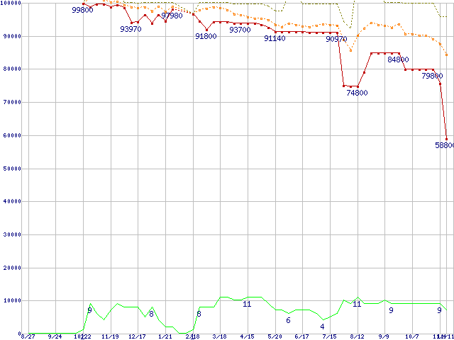 | Athlon 64 FX-55 (2.6GHz)の価格推移 | | | (2004年8月27日~2005年11月11日) |