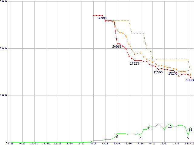| WD3200JD (320GB)の価格推移 | | | (2004年8月26日~2005年11月10日) |