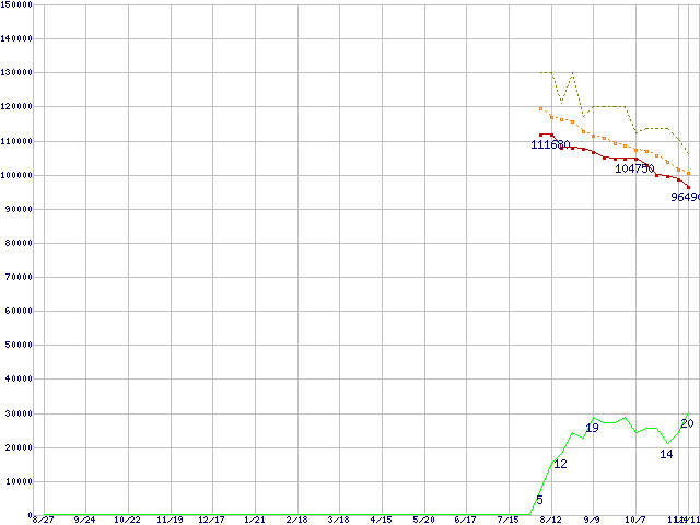 | Athlon 64 X2 4800+ (2.4GHz,L2 1MBx2)の価格推移 | | | (2004年8月27日~2005年11月11日) |