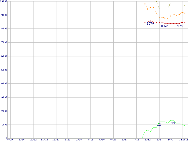 | Sempron 2800+ (1.6GHz,L2 256KB)の価格推移 | | | (2004年8月27日~2005年11月11日) |