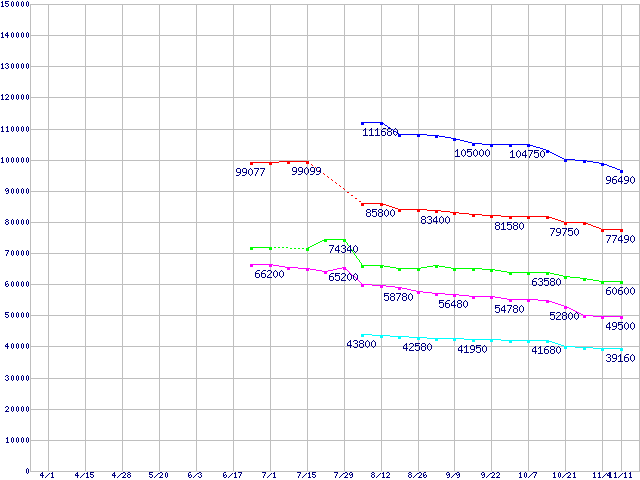Socket 939 (FSB 1000MHz,Dual Core)の最安値推移