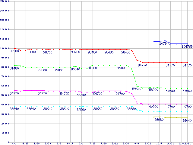 Socket 604 (FSB 800MHz,Dual Core,L2 2MB×2)の最安値推移
