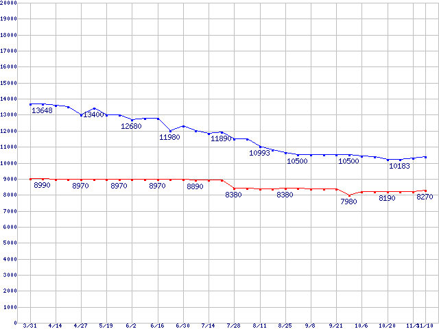 | WD Caviar[Special Edition] (7200rpm,Ultra ATA/100,8MB)の最安値推移 | | | (2005年3月31日~2005年11月10日) |