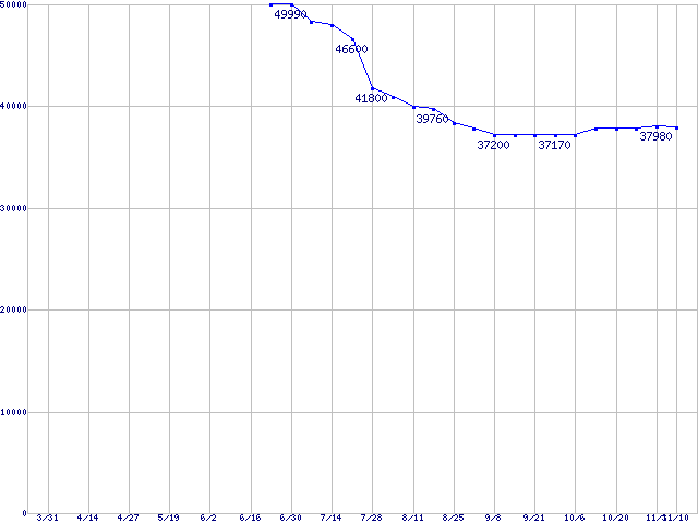 | Deskstar 7K500 (7200rpm,Serial ATA II/3Gbps)の最安値推移 | | | (2005年3月31日~2005年11月10日) |