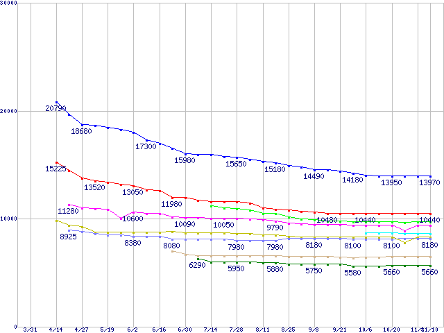 | DiamondMax 10 (7200rpm,Ultra ATA/133,RoHS指令準拠)の最安値推移 | | | (2005年3月31日~2005年11月10日) |