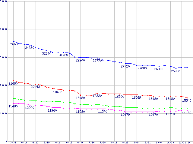 | Barracuda 7200.8 SATA (7200rpm,Serial ATA,NCQ,8MB,133GB/Platter)の最安値推移 | | | (2005年3月31日~2005年11月10日) |