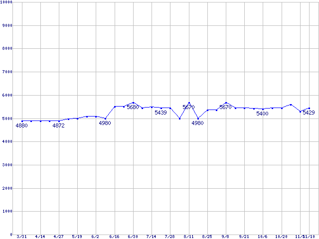 | Barracuda 5400.1 (5400rpm,Ultra ATA/100,2MB)の最安値推移 | | | (2005年3月31日~2005年11月10日) |