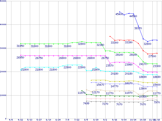 | Socket 754・FSB 800MHzの最安値推移 | | | (2005年4月8日~2005年11月18日) |