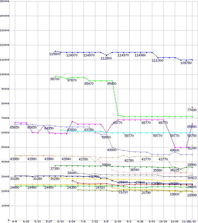 ※点線部は販売店が確認できなかった、または調査データがないことを示します