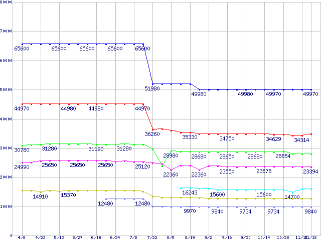 ※点線部は販売店が確認できなかった、または調査データがないことを示します