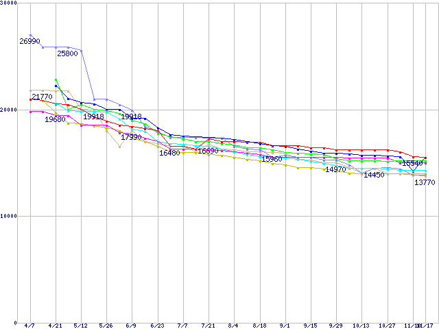 ※点線部は販売店が確認できなかった、または調査データがないことを示します