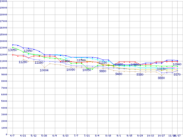 ※点線部は販売店が確認できなかった、または調査データがないことを示します