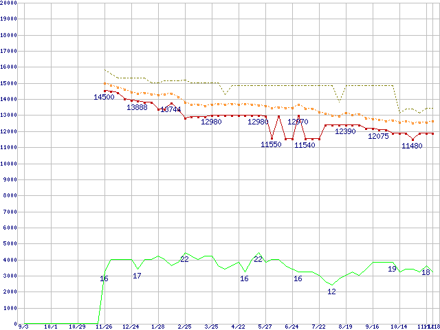 | Celeron D 345 (3.06GHz)の価格推移 | | | (2004年9月3日~2005年11月18日) |