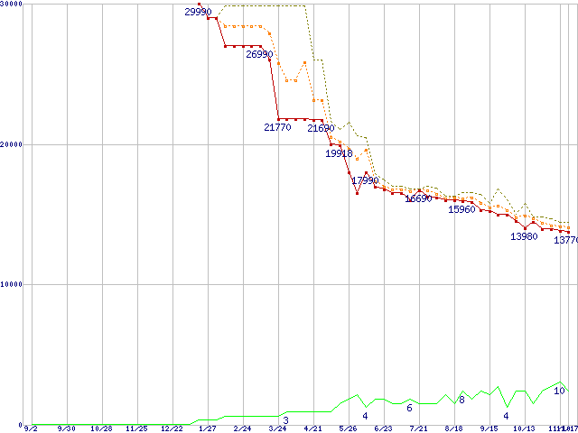 | WD3200JB (320GB)の価格推移 | | | (2004年9月2日~2005年11月17日) |