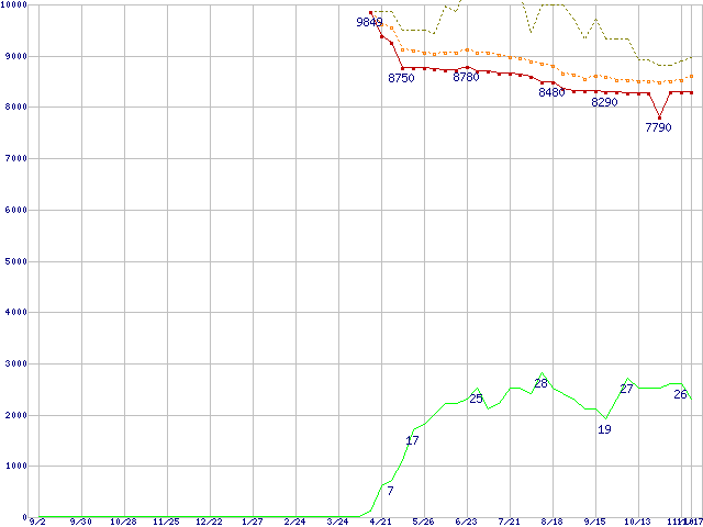 | 6L160P0 (160GB,8MB)の価格推移 | | | (2004年9月2日~2005年11月17日) |
