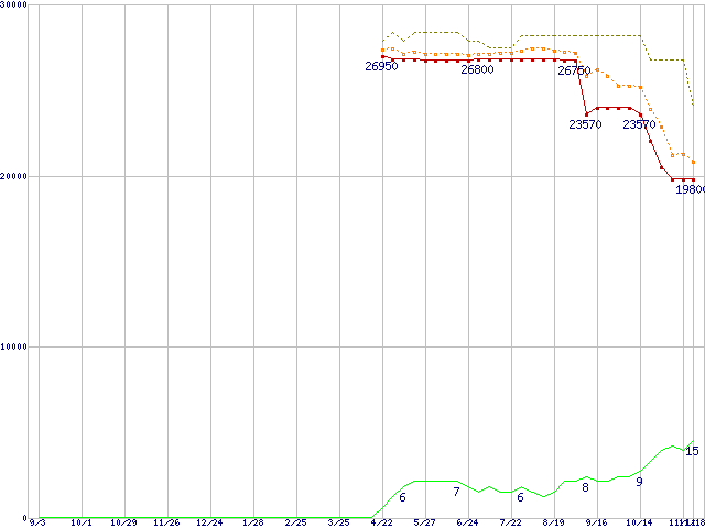 | Turion 64 MT-32 (1.8GHz,512KB) バルクの価格推移 | | | (2004年9月3日~2005年11月18日) |