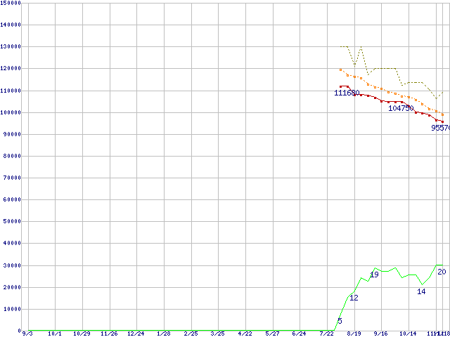 | Athlon 64 X2 4800+ (2.4GHz,L2 1MBx2)の価格推移 | | | (2004年9月3日~2005年11月18日) |