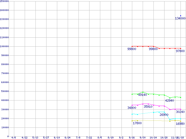 Socket 939 (FSB 1000MHz,L2 1MB)の最安値推移