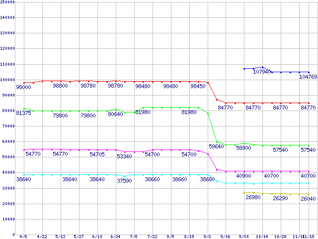 Socket 604 (FSB 800MHz,Dual Core,L2 2MB×2)の最安値推移