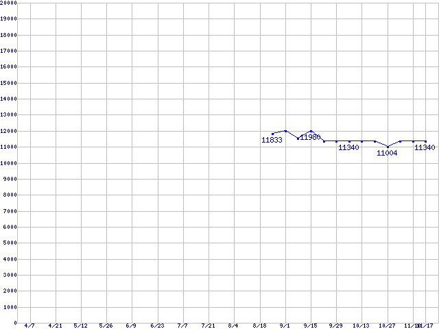 | WD Caviar SE16 (7200rpm,Serial ATA II/3Gbps,16MB)の最安値推移 | | | (2005年4月7日~2005年11月17日) |