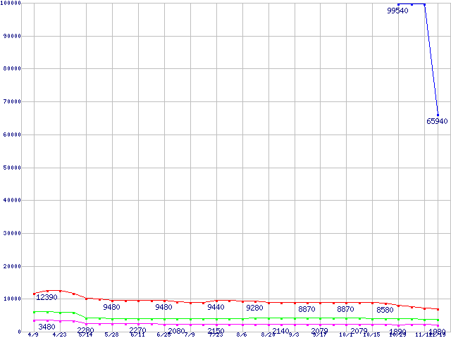 PC2-4200*(DDR2-533) DDR2 SDRAM DIMMの最安値推移