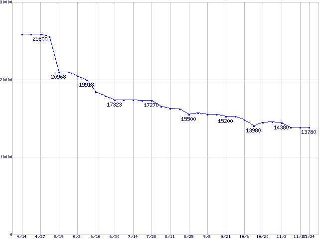 WD Raptor (10000rpm,Serial ATA/150,8MB)の最安値推移