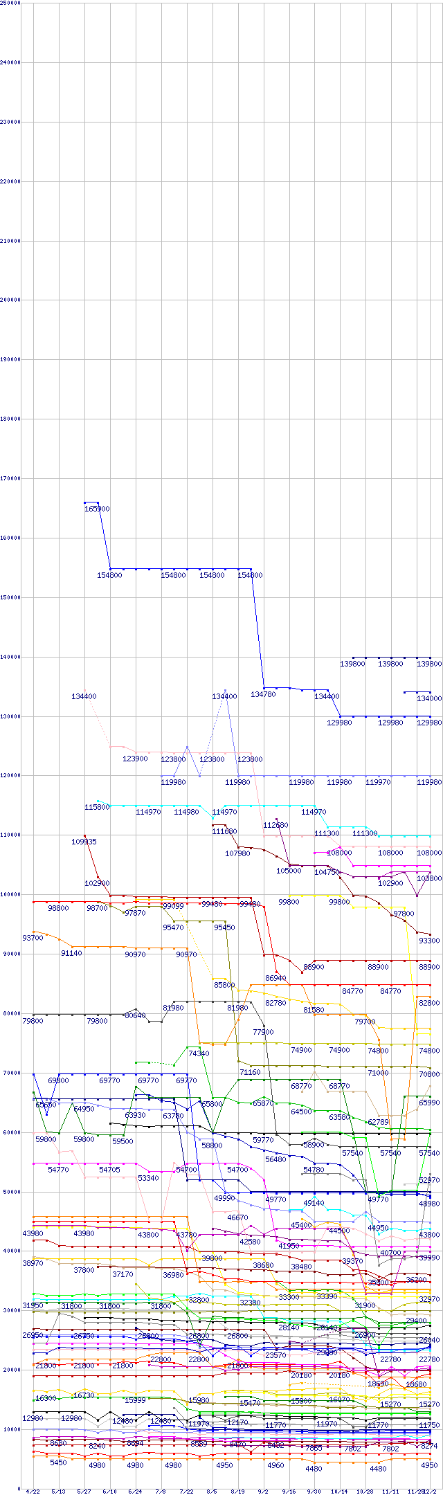 CPU主要製品の最安値推移