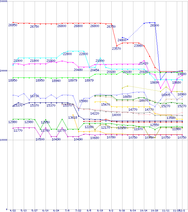 CPU主要製品(最安値2万円~3万円未満)の最安値推移