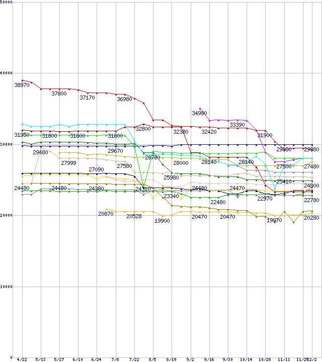 CPU主要製品(最安値2万円~3万円未満)の最安値推移