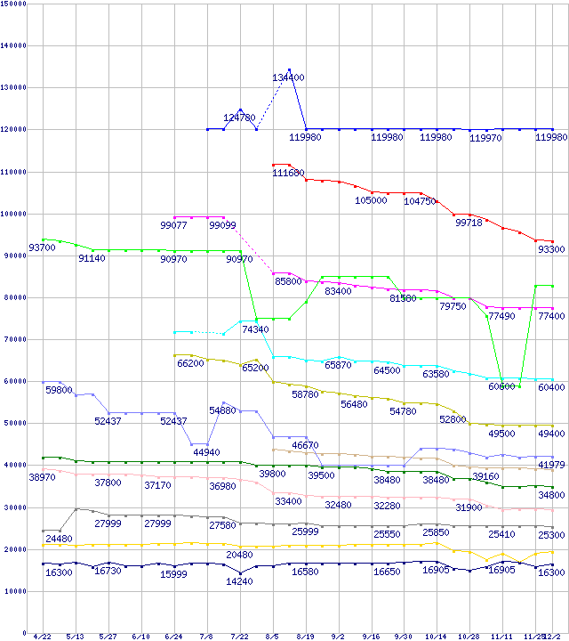 | Socket 939・FSB 1000MHzの最安値推移 | | | (2005年4月22日~2005年12月2日) |