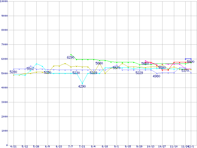 ※点線部は販売店が確認できなかった、または調査データがないことを示します