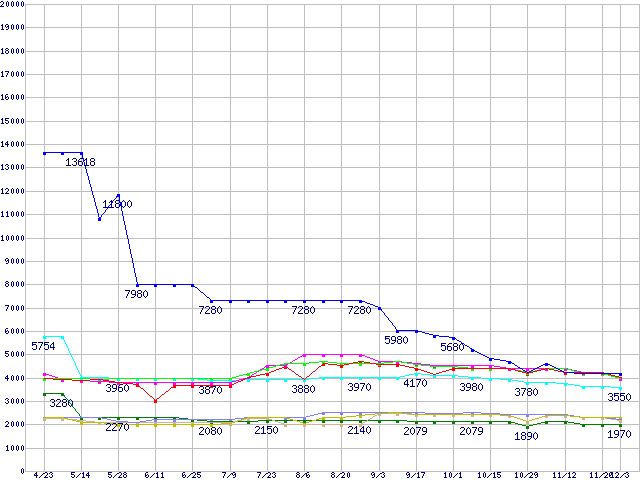 メモリ主要製品(最安値5千円~1万円未満)の最安値推移