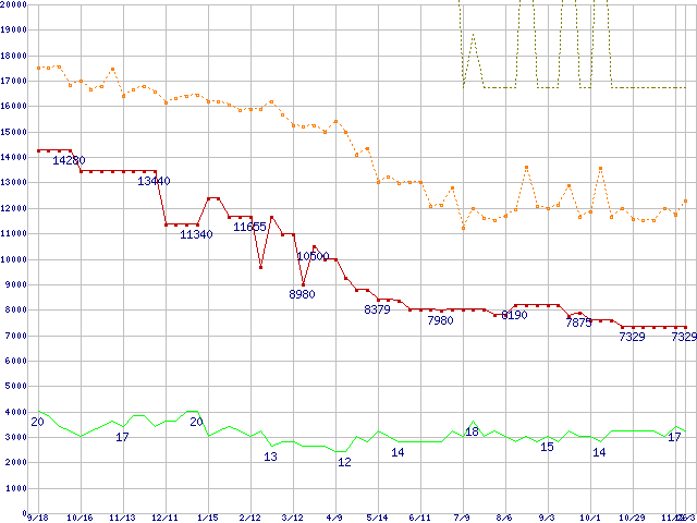 PC3200(DDR400) DDR SDRAM DIMM ECC対応 Registeredタイプの最安値推移