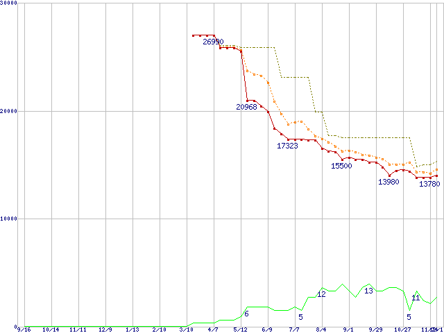 | WD3200JD (320GB)の価格推移 | | | (2004年9月16日~2005年12月1日) |